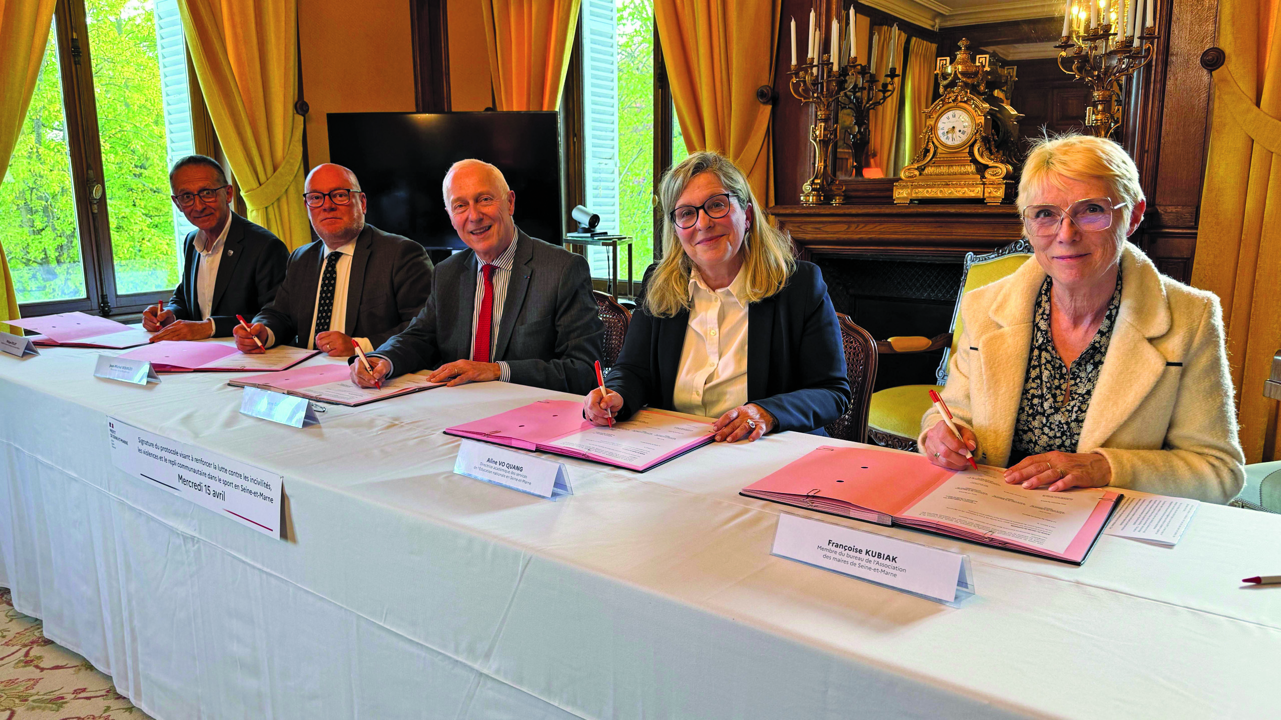 Étaient notamment présents à cette signature le préfet de Seine-et-Marne, les procureurs de la République des tribunaux judiciaires du département, la directrice académique des services de l’Éducation nationale, des représentants de l’Association des maires du département et le président du Comité départemental de football de Seine-et-Marne, accompagnés du commandant du groupement de gendarmerie départemental et du directeur interdépartemental de la Police nationale. Ensemble, les signataires ont rappelé que ce texte s’inscrit dans une logique de prévention et de répression des comportements manifestant des violences, des discriminations, des provocations, des menaces, des atteintes à la laïcité, mais aussi des débordements sur les réseaux sociaux, lorsqu’ils se produisent dans les enceintes sportives, à proximité de celles-ci ou en lien avec des événements sportifs.